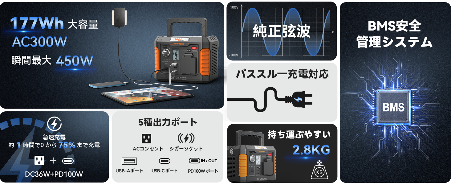 品名:Togo Power ポータブル電源 300W
