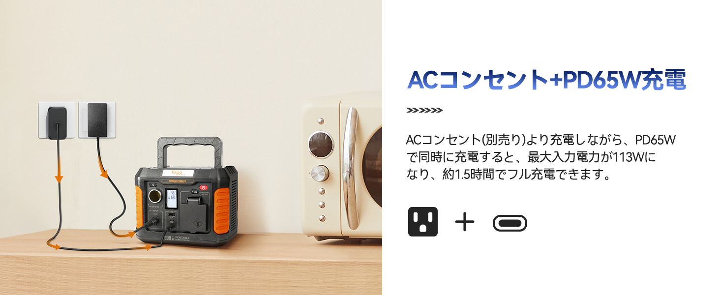 AC出力: 300W/瞬間最大450W