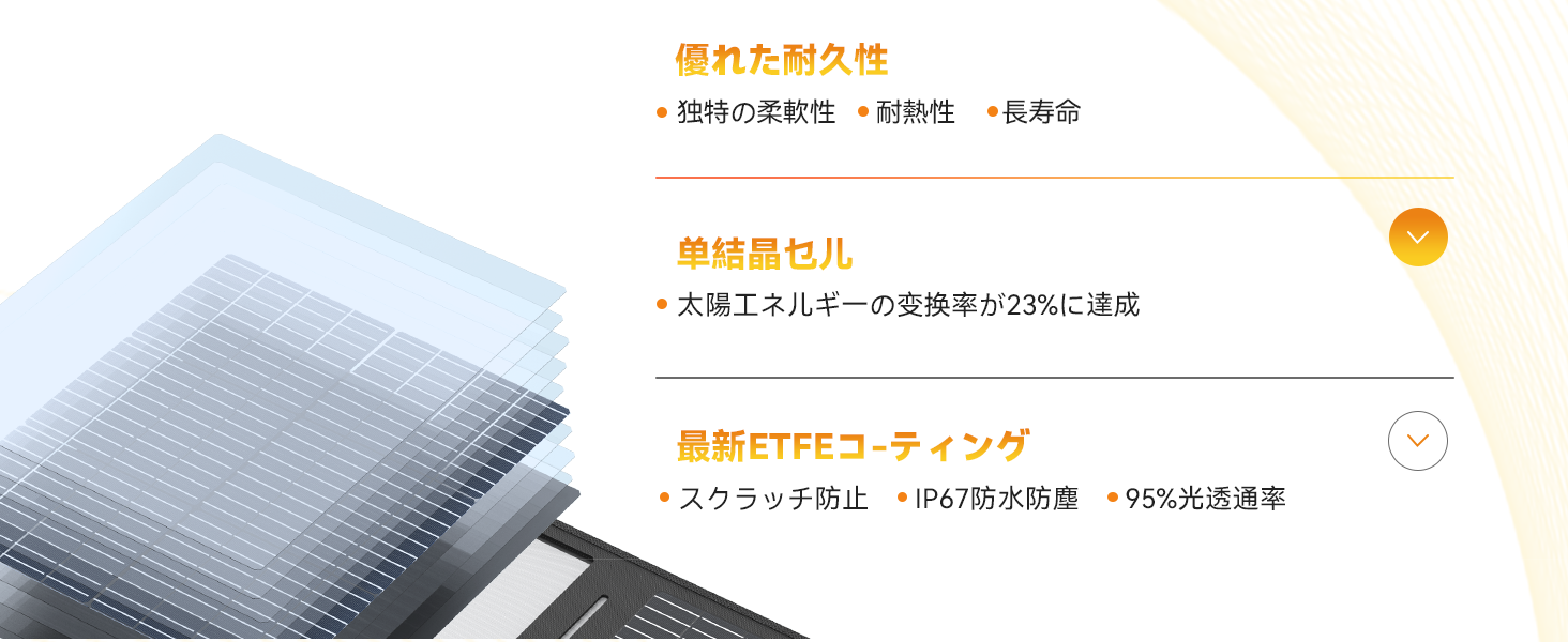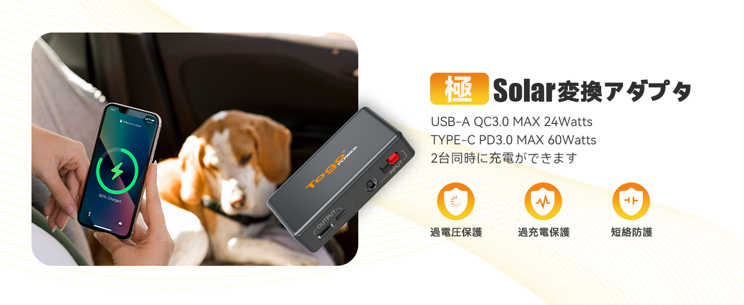 安全性が大幅に向上するリン酸鉄リチウムイオン電池搭載、熱分解温度が高く、熱安定性や安全性が非常に優れています。60WソーラーパネルはMPPT制御方式を採用したため、異なる気象条件下で太陽電池から最大電力を取り出すことができます。
