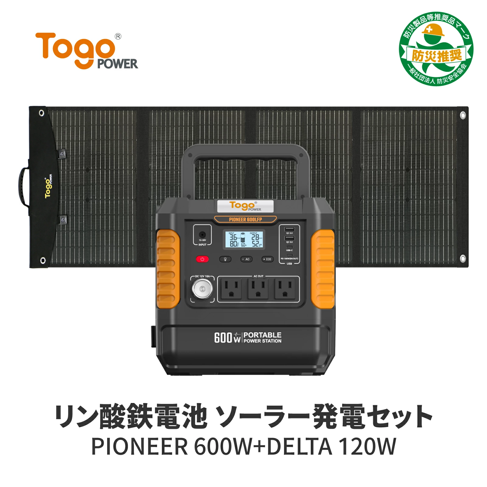 TogoPower リン酸鉄 600W ポータブル電源 120W ソーラーパネル セット リン酸鉄 蓄電池 純正弦波 小型 ソーラーチャージャー 太陽光発電 災害用 防災 地震 停電
