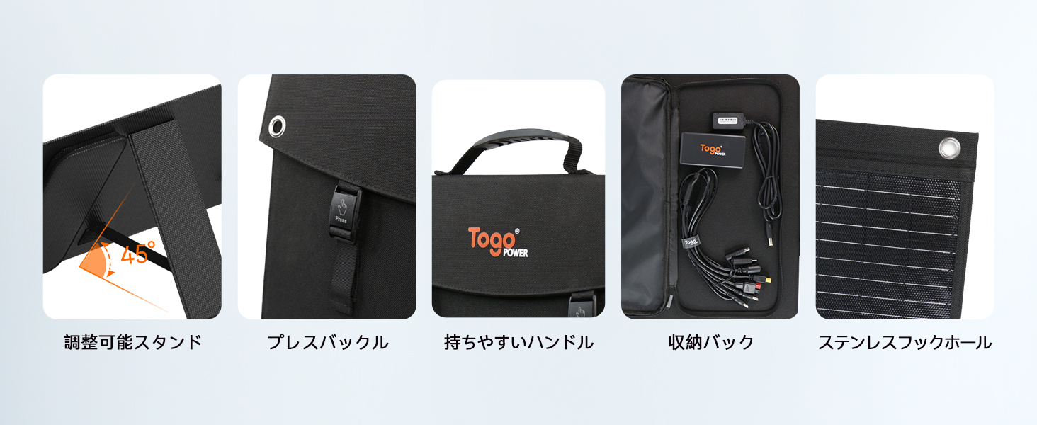 TogoPowerの長寿命対応小型モデル600Wポータブル電源と収納力抜群の120Wソーラーパネルを組み合わせた防災グッズセットです。内部に過電圧、過負荷、 過熱、短絡、低温、低電圧、過電流などを監視・管理し、内蔵電池を安全に動作させるBMSの安全管理システムも搭載されます。