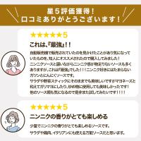 にんにく(中国産)、食用植物油脂、砂糖、食塩、ラード、醸造酢、ガーリックミンス、香味食用油、乾燥卵黄、粉末醤油/調味料(アミノ酸等)、乳化剤、酸味料、セルロース、増粘剤(キサンタンガム)、キトサン、カラメル色素、V.B1、香料、(一部に小麦・卵・かに・大豆・豚肉・牛肉を含む)