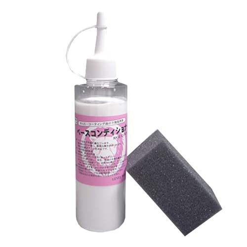 今回ここでご紹介する究極の下地処理研磨剤「ベースコンディショナー」は 研磨粒子の平均粒径は、光学レンズ磨き用研磨剤に匹敵する0.5ミクロンです。 超微粒子タイプの平均粒径が2〜3ミクロンという事を考えますと、その細かさは お分かりになるかと思います。 しかも粒子の含有率が一般的超微粒子タイプの約3倍で、切れ味がシャープな高品位研磨剤です。 「ベースコンディショナー」はプロの磨きの研磨工程の中の最終段階(バフ目消し)に 使用されているコンパウンドをベースに一般ユーザーの方でも手磨きで、 安心・簡単に使えるように開発された商品です。 次の様なお悩みを抱えている方 ● ワンランク上の仕上がりをお望みの方 ● 水垢を落としたいのだが、水垢落しは困難な作業だと思っている方 ● 濃色系の塗装で手磨きでコンパウンド磨きをするとよけい傷だらけになると思っている方 ● 市販の水垢落しを使用したら、よけい水垢がつきやすくなった方 ● ワックス・コーティング剤のノリがイマイチだと思われる方 ● 少しでもプロの仕上がりに近づけたい方 に最適な商品と言えるでしょう。 ※ 本製品には作業性を向上させる為に微量のシリコーンが含まれておりますが、 ごく微量の為、塗装面・コーティング剤に悪影響を及ぼしませんので、安心してご使用になれます。 ※ 本製品は、水垢汚れ・ごく浅い傷・シミの除去を対象としております。