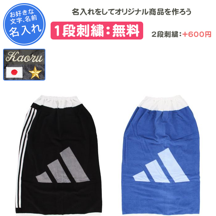 素材:綿100% 生産国:ベトナム サイズ:87×120CM カラー:A/ブラック、B/ブルー | | ■ 品番 | ADJT948 | | ■ 商品名 | ラップタオル大 | | ■ 刺繍の注意事項 | 1.特殊記号や旧文字の刺繍はできません。 2.ご注文後のキャンセル、返金、商品交換などはできません。 3.文字の間隔、刺繍文字の大きさ、加工位置は当店にて決めさせていただき、文字数が多くなるにつれて1文字の大きさが小さくなります。 4.刺繍の文字は、1段8文字までとさせていただきます。 5.ロゴ刺繍は、文字の糸と同色になります。なお、日本国旗のみ写真のように赤と白の刺繍となりますのでご注意ください。 6.ロゴ刺繍は、刺繍文字の後ろに入ります。