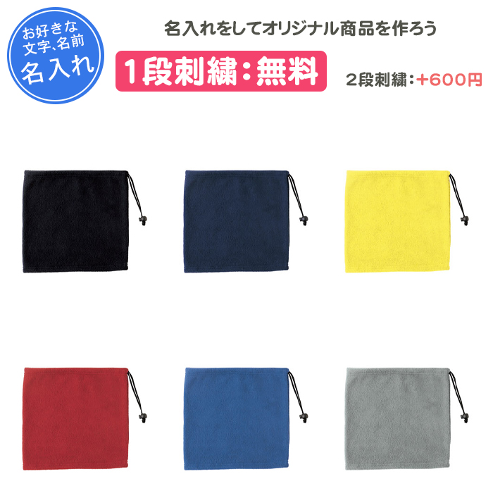 ※紐:ポリプロピレン ◎素材の特性上、紐に熱がかかる場合、縮みが発生する場合がございます。 お取り扱いには十分ご注意ください。 ◎ポリエステル生地は熱をかけると縮む場合がございます。 ◎ポリエステル素材の染色には分散染料を用いている為、熱加工によりブリードを起こす可能性がございます。お取り扱いにはご注意ください。 | ■ 品番 | FNK630 | ■ 商品名 | ネックウォーマー | ■ カラーバリエーション | 02:ブラック、03:ネイビー、05:イエロー、06:レッド、07:ブルー、28:シルバーグレー | ■ 刺繍の注意事項 | 1.特殊記号(○や☆など)や旧文字の刺繍はできません。 2.ご注文後のキャンセル、返金、商品交換などはできません。 3.文字の間隔、文字の大きさ、加工位置は当店にて決めさせていただきます。文字数が多くなるにつれて1文字の大きさが小さくなります。 4.刺繍の文字数につきましては、商品ページにてご確認をお願いいたします。 5.文字の大きさは、当店にて決めさせていただきます。 6.加工商品になりますので、10-14日(当店営業日)ほど発送までお時間をいただきます。 7.代引きを除いたお支払方法となります。 8.ラッピングの画像は、イメージ画像となります。