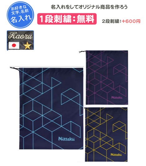 卓球バッグ シューズケース 1段刺繍付きニッタクバッグ シューズ袋 刺繍 記念品 卒団
