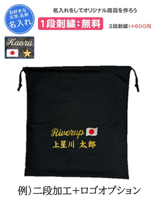 1段刺繍代:無料 2段刺繍代:+600円(税込) ラッピング代:1枚90円(税込) ロゴ代(1個):+300円となります。(刺繍文字の糸と同色になり、刺繍文字の後ろに入ります。) ※文字数は、1段8文字までとなります。 | | ■ 商品名 | オリジナルグローブ袋 野球 ソフトボール
