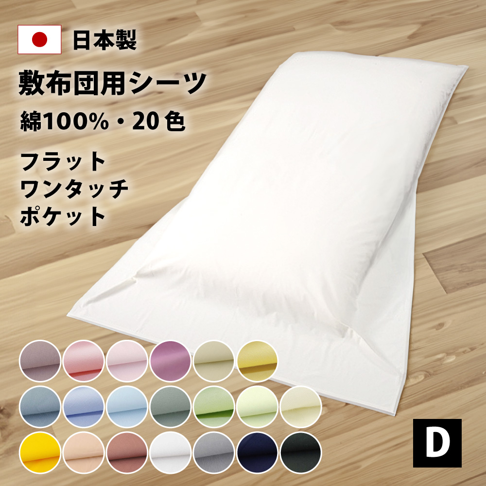 フラットシーツ ワンタッチシーツ ポケットシーツ ダブル 綿100% 20色 ゴム付き 日本製 敷布団シーツ