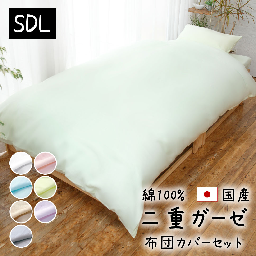 10%オフ 布団カバー 3点 セット ダブルガーゼ セミダブル ロング 綿100% 日本製 お肌に優しい やわらか 国産ガーゼ 2重 掛け布団カバー 敷き布団カバー 枕カバー
