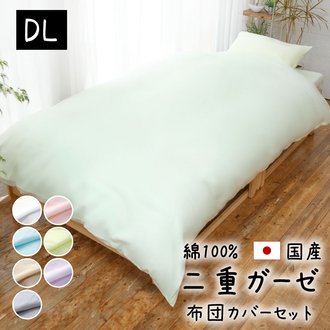 10%オフ 布団カバー 4点 セット ダブルガーゼ ダブル ロング 綿100% 日本製 お肌に優しい やわらか 国産ガーゼ 2重 掛け布団カバー 敷き布団カバー 枕カバー