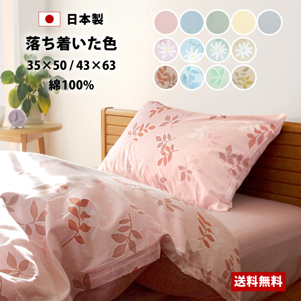 枕カバー 35×50 43×63 日本製 綿100% スイングシリーズ まくらカバー ピローケース ピロケース 無地 花柄 リーフ柄