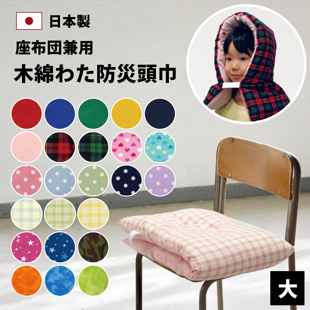 防災ずきん 大 日本製 大人 大人用 中学生 小学生 小学校 子供 子ども 高学年 女の子 男の子 防災頭巾 防災 頭巾 ずきん 背もたれ 椅子 座布団 手作り サイズ