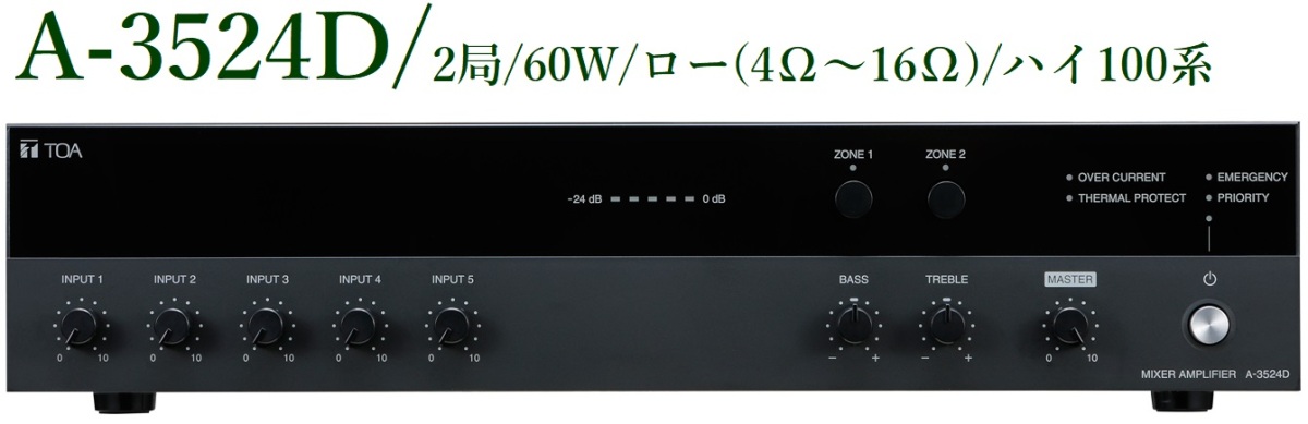A-3524D PAアンプ 240W/2局/ロー(4Ω〜16Ω)・ハイ100系 TOA