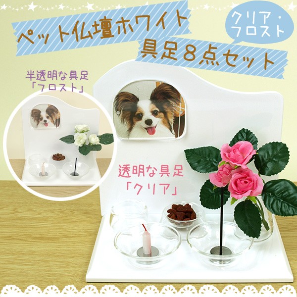 ステージ型ペット仏壇 ホワイト&クリア・フロスト具足8点セット ペット供養 手元供養 ペット仏壇 ペットロス癒し メモリアル お盆 お彼岸