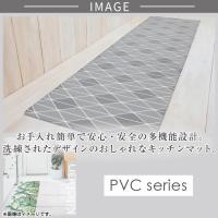 在庫処分 キッチンマット 約45×180cm 単品 1枚 / ラティス PVC グレー 床暖房OK 拭くだけ 洗濯不要 滑りにくい 冷え対策 おしゃれ 上品 シンプル