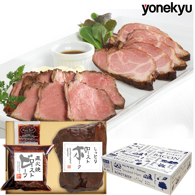 牛もも肉 の表面を直火で焼いて真空調理でうま味を閉じ込めた 赤身 のおいしさ広がる ローストビーフ と「 牛肉 を超えた!?」と評判のしっとりやわらか ローストポーク を合わせたギフトセット