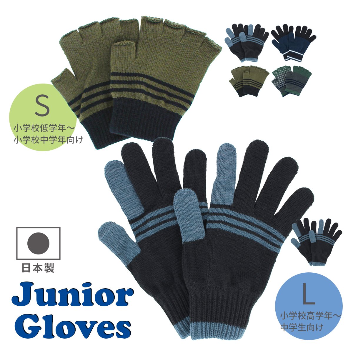 | 商品紹介 | ラインと配色がおしゃれな日本製のキッズ〜ジュニア用ニット手袋です。通学時やサッカーや野球などのスポーツの練習時、外遊びの時などに便利です。伸縮性のある糸で優れたストレッチ性を実現しました。着脱しやすく、成長するお子様の手に長くフィットします。手洗いが出来るのも嬉しいポイント!指なしスタイルは指先が出ているので、手袋をつけたまま、靴紐を結んだり、スマホ操作が出来る人気のスタイルです。一枚で着用するのはもちろん、五本指の手袋と重ねてレイヤードを楽しめます。※こちらの手袋は資材等が付いていないエコ包装でお届けします。※倉庫保管品のため、シワがある場合がございますが品質に問題はございません。 |