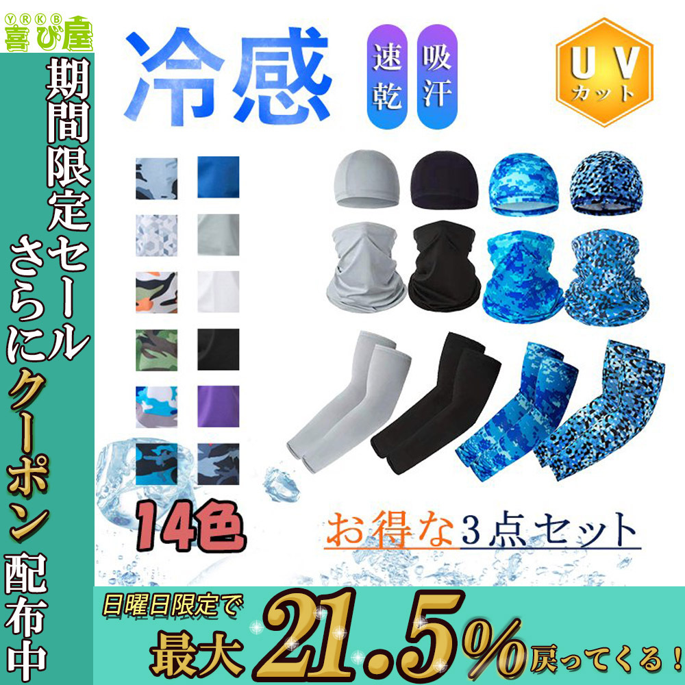 ●日焼け対策3点セット●フェイスマスク アームカバー フェイスカバー インナー インナーキャップ ネックゲートル レディース 冷感 ずれないアームカバー