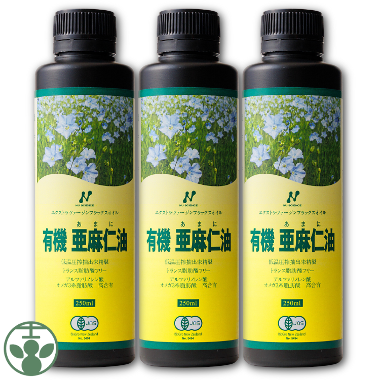 有機 亜麻仁油 250ml 3本セット ニュージーランド産 ニューサイエンス トランス脂肪酸0 有機JAS認定 送料無料