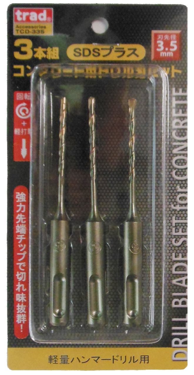 trad 三共コーポレーション TCD-335 SDSプラス コンクリート用ドリル刃セット 3本組 3.5mm TCD335 【819547】(15130065)
