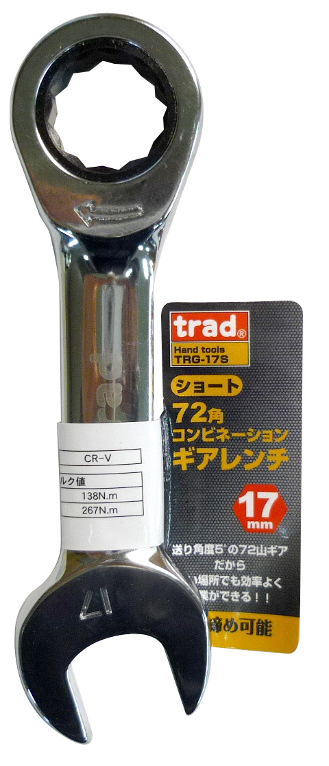 trad 三共コーポレーション TRG-17S 72角コンビネーションギアレンチショート 17mm TRG17S 【823216】(15130370)