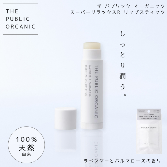 ザ パブリックオーガニック スーパーリラックス 精油リップスティック (ラベンダー&パルマローザの香り)100%天然由来 4g THE PUBLIC ORGANIC カラーズ