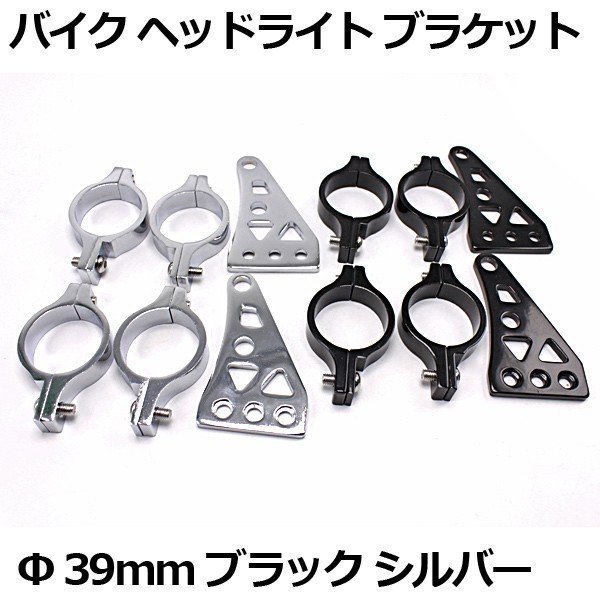 ヘッドライト ブラケット Φ 39mm フロントフォーク 左右2個セット ヘッドライト ステー 汎用 ブラック シルバー バイク カスタム