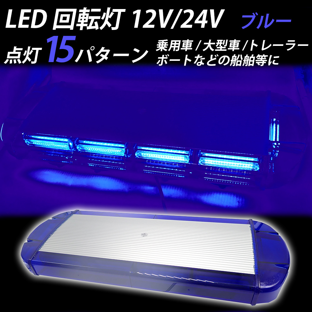 LED 回転灯 青 パトランプ 12V/24V ブルー フラッシュビーコン 強力マグネット 点灯15パターン シガーソケット 防犯 警告灯