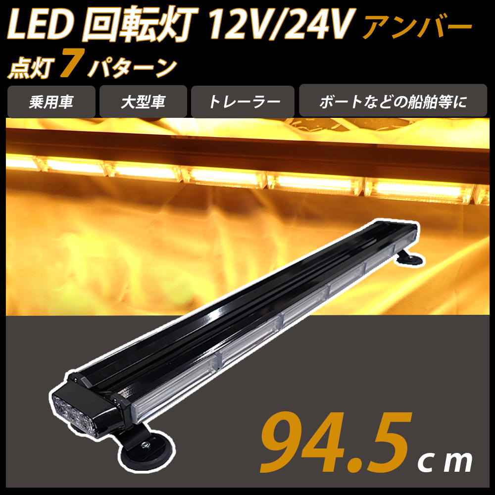 LED 回転灯 黄色 ライトバー パトランプ アンバー 12V/24V フラッシュビーコン 点灯 94.5cm シガーソケット 防犯 警告灯 道路維持作業車