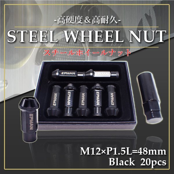 ホイールナット スチールナット 貫通 20個 ブラック 黒 P1.5 17HEX 48mm トヨタ ホンダ マツダ ダイハツ 三菱 NBOX マークX プリウス クラウン 他