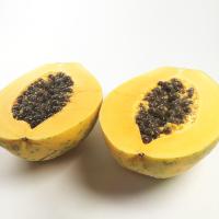 パパイヤはこちらの黄色の果肉ソロ種とオレンジ色の果肉サンライズ種の2種あります。