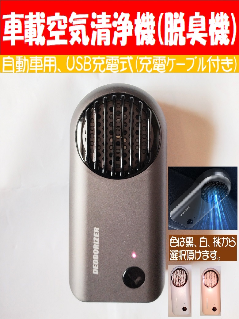 車載用空気清浄機 除菌 脱臭機 消臭 オゾン発生器 車用 USB充電 白、桃、黒