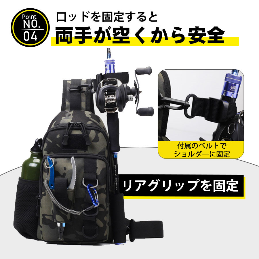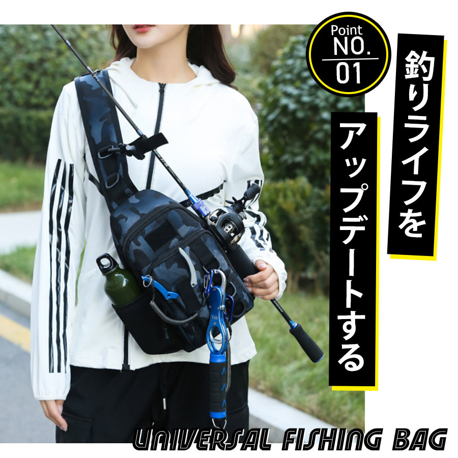 \即納/フィッシングバッグ 釣りバッグ ロッドホルダー 大容量 ウエスト ヒップバッグ 防水 ショルダー 釣り タックル 多機能 迷彩 カバン 釣具タックル 爆買