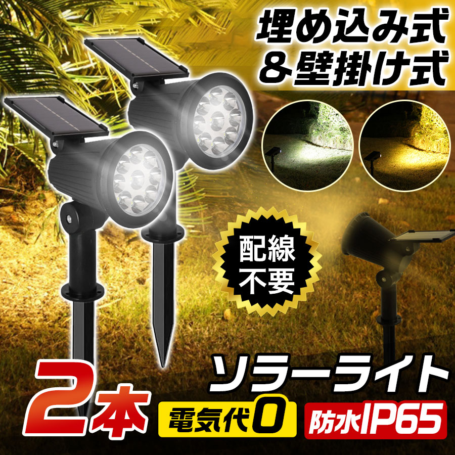 \即納/ソーラーライト 2本セット ガーデンライト LED 屋外 室外 庭 ライト センサー 明るい 防水 照明 防犯 太陽光 玄関 アウトドア 埋め込み 爆買