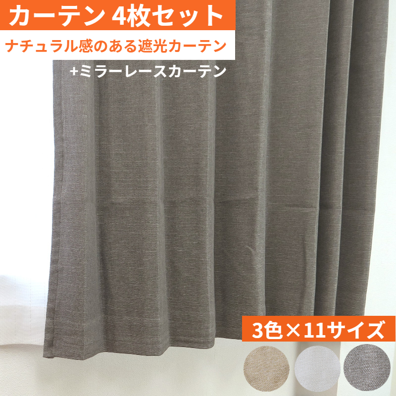 カーテン 4枚セット 遮光1級 遮光2級 ドレープカーテン 2枚 + ミラーレースカーテン 2枚 形状記憶加工付き
