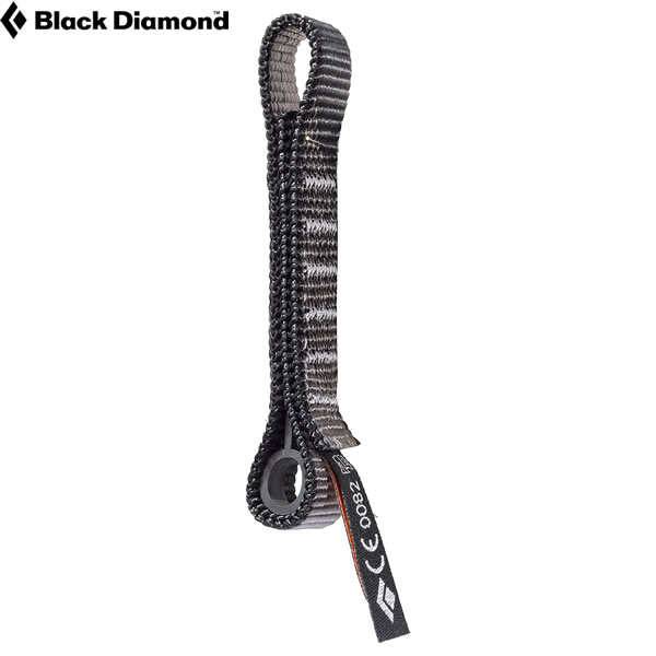 カラビナをセットする部分は細く絞り込み、その他は広く編まれたBDロゴ入りポリエステルドッグボーン。