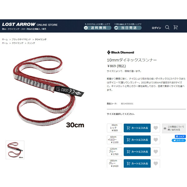 ブラックダイヤモンド 10mmダイネックスランナー (30cm) cp 778016 BD14050001 国内正規品