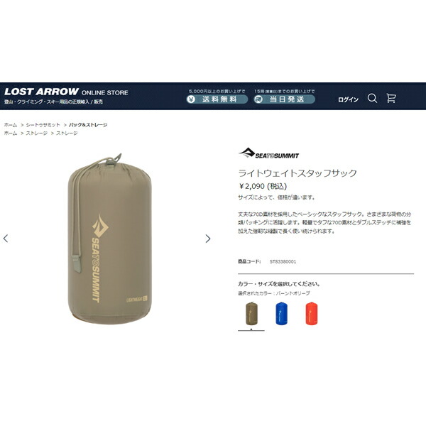 シートゥサミット ライトウェイトスタッフサック 3L cp 714003 ST8338000x 国内正規品