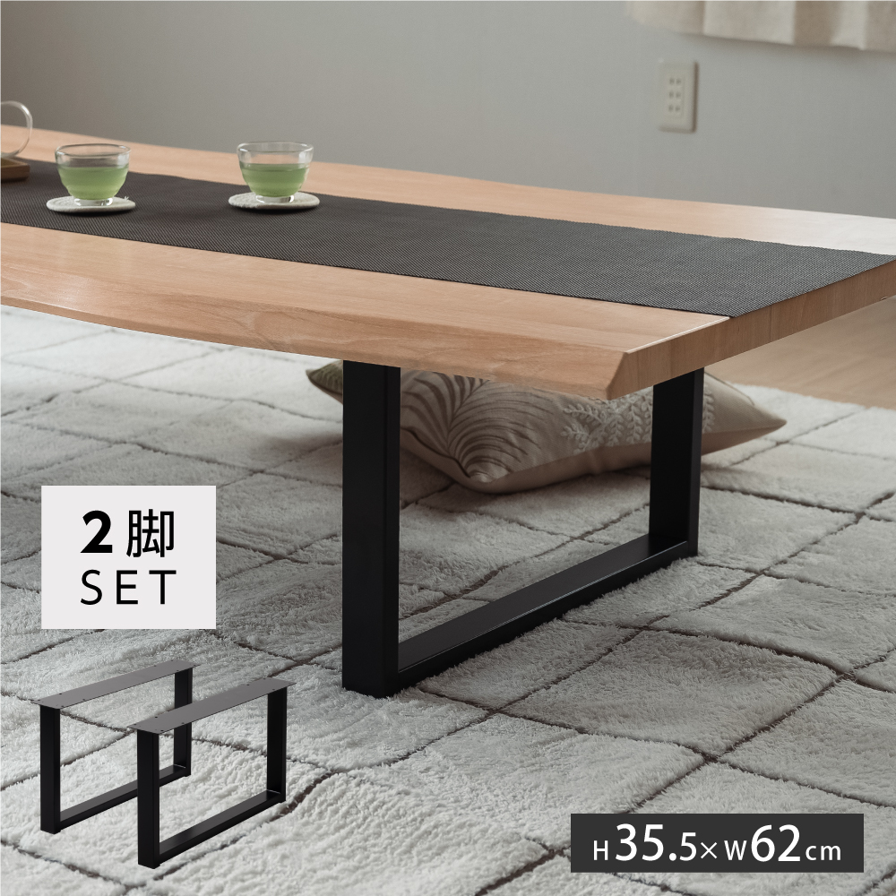テーブルキッツ脚 ロータイプ 口型 高さ35cm 2本組 ブラック スチール製 角枠脚 アジャスター付き hdt-2s-long 爆買