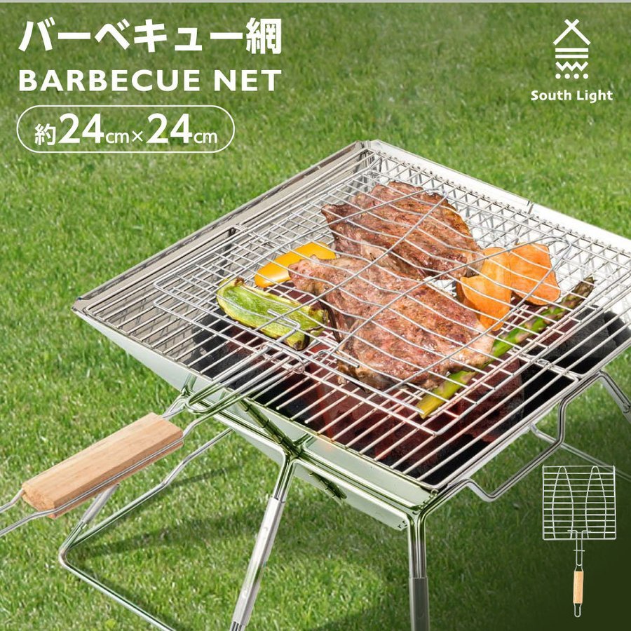 バーベキュー網 BBQ 直火専用 約24cm×24cm 持ち運び楽 料理 ソロキャンプ 魚介類 シーフード はさみ焼き 両面 魚焼き アウトドア sl-grid23