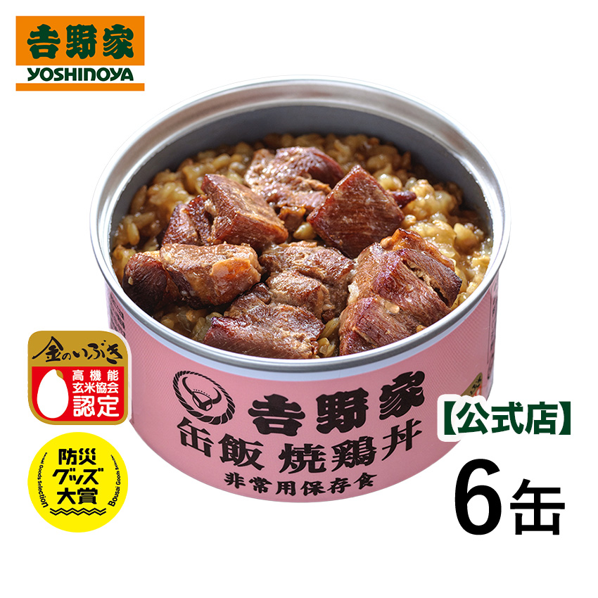 吉野家 公式【常温/冷凍配送可】 缶飯焼鶏丼6缶セット【非常用保存食】 常温保存 ごはん付き缶 缶詰 吉野家 ギフト 非常用 防災食 備蓄食料 災害食
