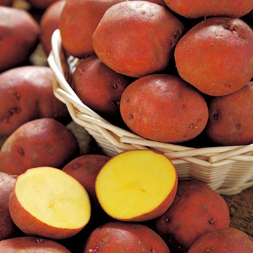 赤皮で多収性品種。ほくほくとして口当たりがよく、甘くサラダによい。カロチノイドが豊富で機能性に優れる。