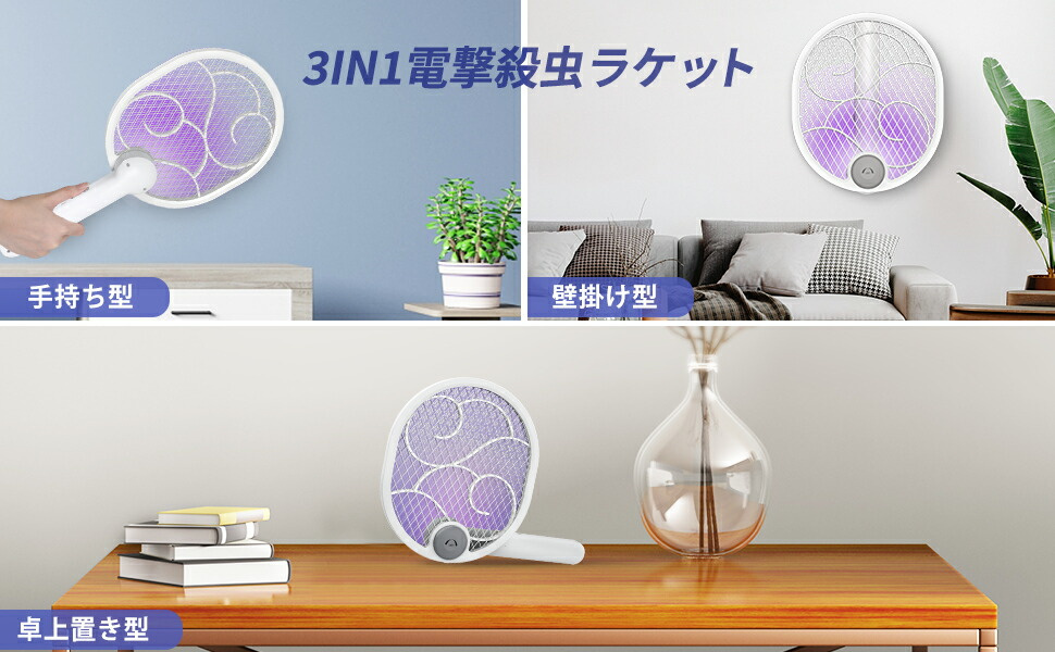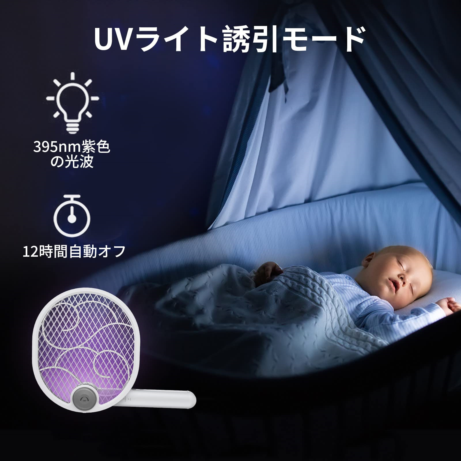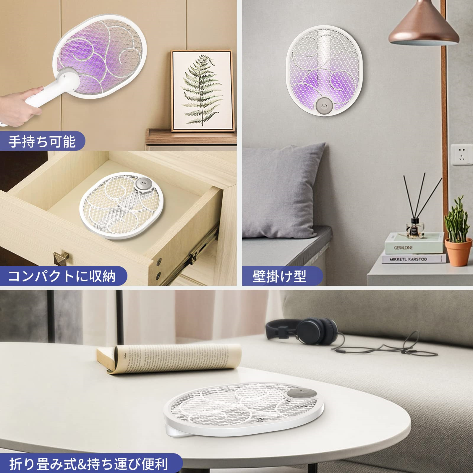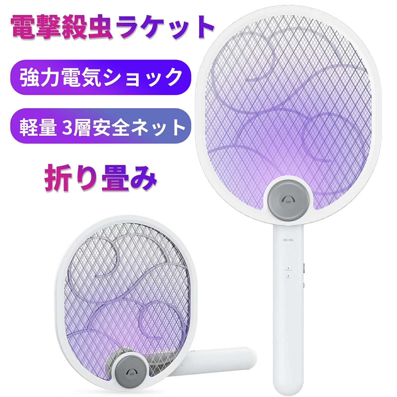 電撃殺虫ラケット 電撃殺虫器 折り畳み 蚊取り uvライト 強力電気ショック USB充電式 軽量 3層安全ネット 害虫退治 ハエ退治 蚊対策 虫除け 薬剤不要 殺虫器