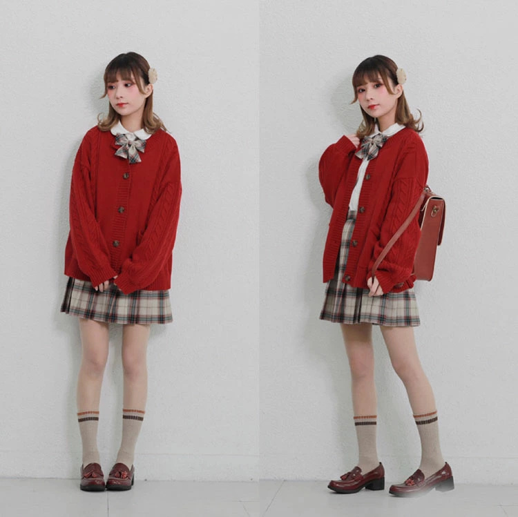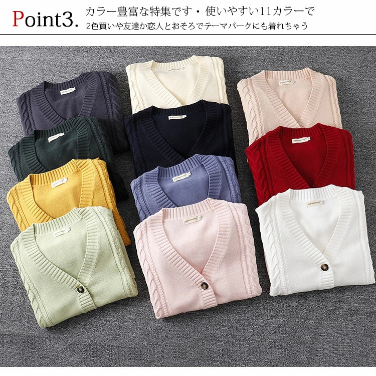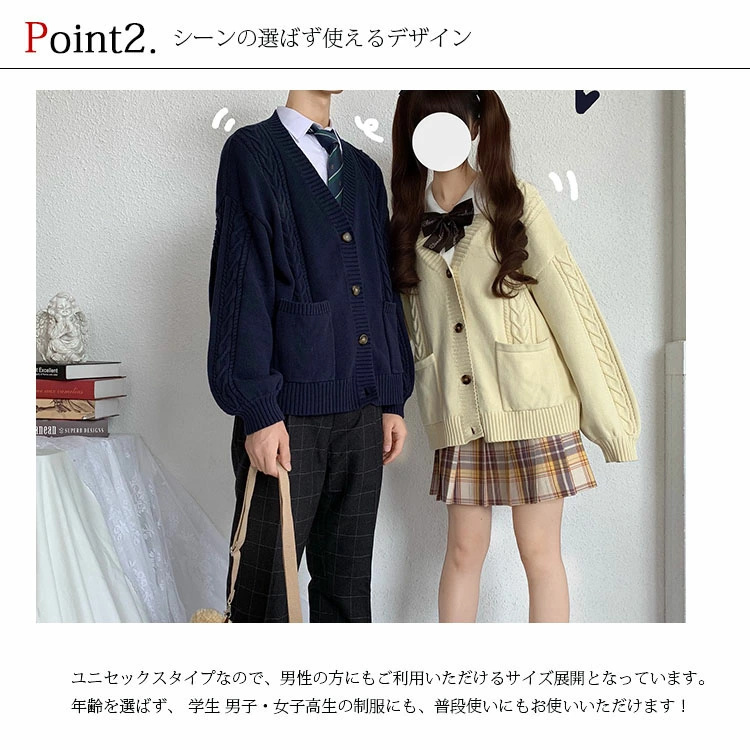 スクールカーディガン ニット ケーブル編み カーディガン 学生 コットン 無地 ゆったり Vネック ニット 綿100% スクールセーター 秋冬 厚手 オールシーズン JK制服 学生服 女子 学校 高校生 通学 コスプレイメンズ レディース ユニセックス 11色