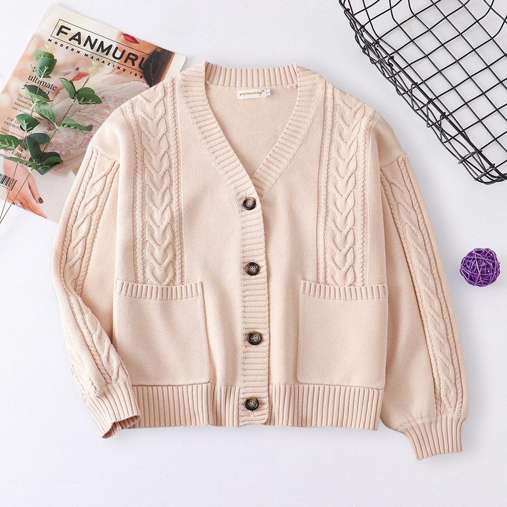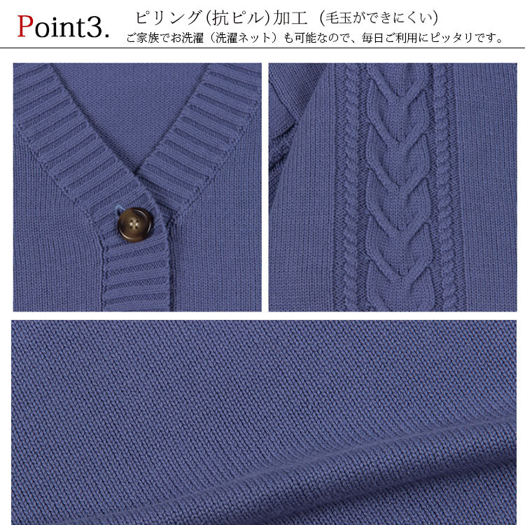 スクールカーディガン ニット ケーブル編み カーディガン 学生 コットン 無地 ゆったり Vネック ニット 綿100% スクールセーター 秋冬 厚手