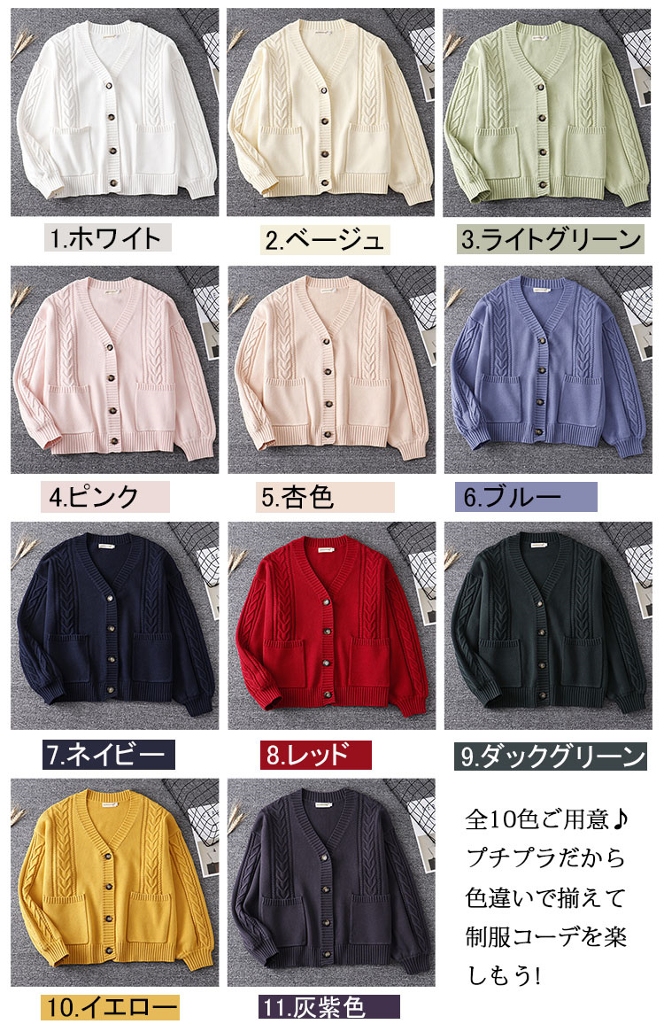 秋冬のスクールライフを快適!厚手無地カーディガン色の展開が豊富で、シンプルながら幅広い選択の可能なモデルです。