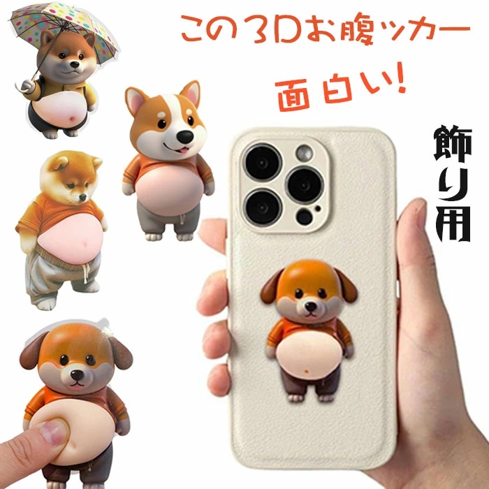3D ぷにぷにシール デブ犬 柔らかいお腹 もっちりスクイーズ ストレス解消 ふわふわ かわいい マシュマロ触感 癒し スクイーズ ステッカー シー ル帳 デコレーション 携帯電話飾り用 手帳用 日記帳用 手芸用品 ストレス解消おもちゃ