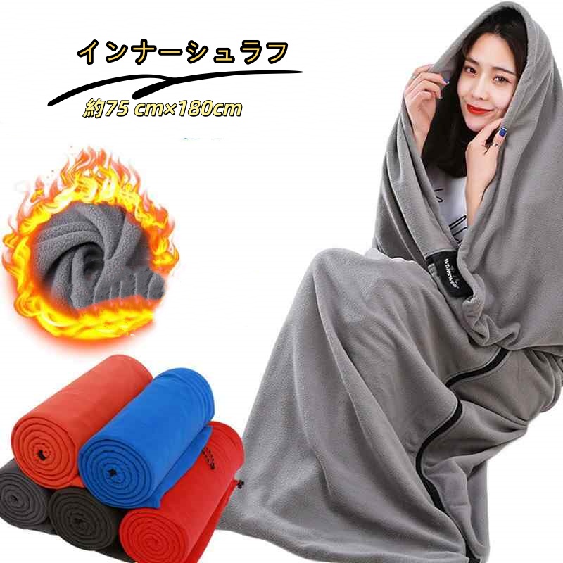 インナーシュラフ 寝袋 シュラフ 冬用 最強 封筒型 フリース ブランケット ひざかけ キャンプ 掛け毛布 インナーシーツ 暖かい 洗える 軽量 来客用 防災 車