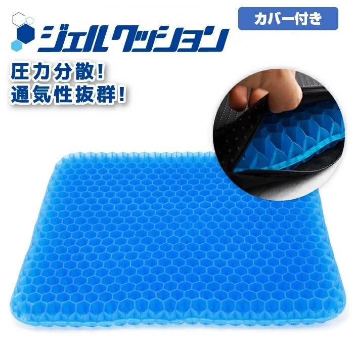 フィットハニカム ジェルクッション 両面使用 ハニカム構造 運転 ゲルクッション 体圧分散 サポート 無重力 クッション 釣り 座布団 座り仕事 デスクワーク 座椅子 カバー付き