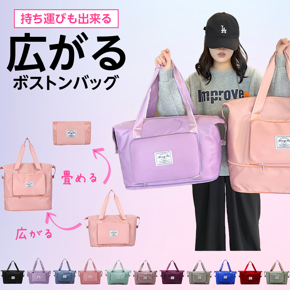 トラベルバッグ レディースバッグ ボストンバッグ キャリーオン おしゃれ コンパクト 旅行バッグ エコバッグ ファスナー 折り畳み マチ広 ゴルフ 10代 20代 30代 40代 50代 60代